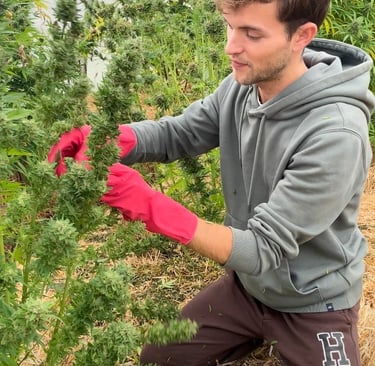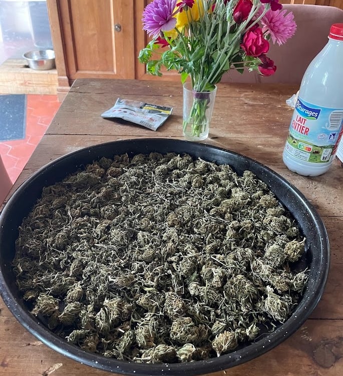 Lorsque les plants atteignent leur maturitĂ©, gĂ©nĂ©ralement en fin dâĂ©tĂ©, nous procĂ©dons Ă une rĂ©colte manuelle. Cette mĂ©thode permet de prĂ©server les trichomes, riches en cannabinoĂŻdes et en terpĂšnes.