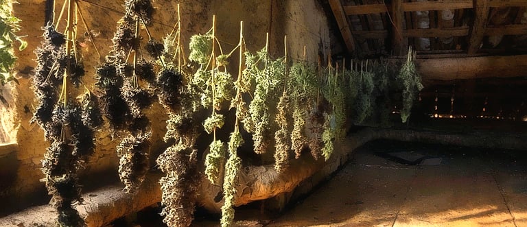 Une fois récoltées, les fleurs de chanvre sont sélectionnées et séchées dans un environnement contrÎlé pour éviter la dégradation des cannabinoïdes.